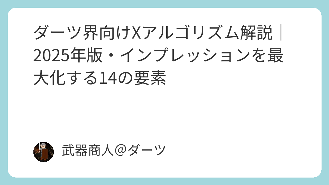 アルゴリズムが「この人はダーツの専門家だ」と判断すると、フォロワー外の“ダーツに興味がある層”へ自動的に推奨されます。これはインプレッションを伸ばすうえで最重要の要素です。